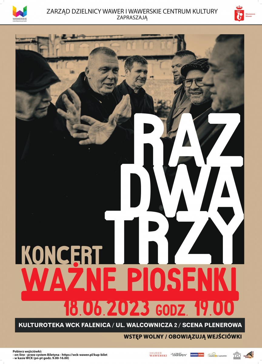 Raz Dwa Trzy od lat udowadnia, że można podążać własną drogą, trzymać się własnych pomysłów i estetyki a przy tym osiągnąć popularność, cieszyć się ogromną atencją fanów i nieustającą życzliwością krytyków. Karierę zaczynał na Studenckim Festiwalu Piosenki w Krakowie. Nierzadko wymieniany, jako zespół rockowy - wszak występował w Jarocinie. Sympatycy, fani i wielbiciele Raz Dwa Trzy kochają Adama Nowaka i jego zespół za senne bosanowy, kojące rytmy reggaeowe, miękko otulające dźwięki gitar, akordeonu i kontrabasu. Bogactwo instrumentów, technicznie doskonałe aranżacje, pełna pasja tworzenia i grania to znaki firmowe zespołu. Teksty Adama Nowaka są kunsztownie skonstruowanymi opowieściami z głębokim przesłaniem. Filozoficzne kapsułki, które chce się połknąć, by poszerzyć świadomość. Adam Nowak nie boi się pytań o rzeczy trudne i ostateczne. Jego liryka porusza i pozostaje w słuchaczu. Raz Dwa Trzy to zjawisko. Fenomen.
