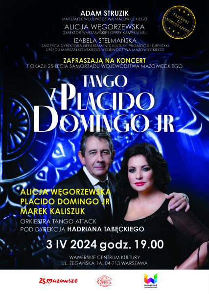 Przed Państwem wieczór pełen przebojów z lat międzywojennej Polski przeplatanymi nostalgicznymi dźwiękami obozowych tang wyśpiewanych w jidysz („Miasteczko Bełz”, „Rebeka”). Plácido Domingo Jr. przypomni natomiast największe argentyńskie szlagiery Piazzolli i Gardela.