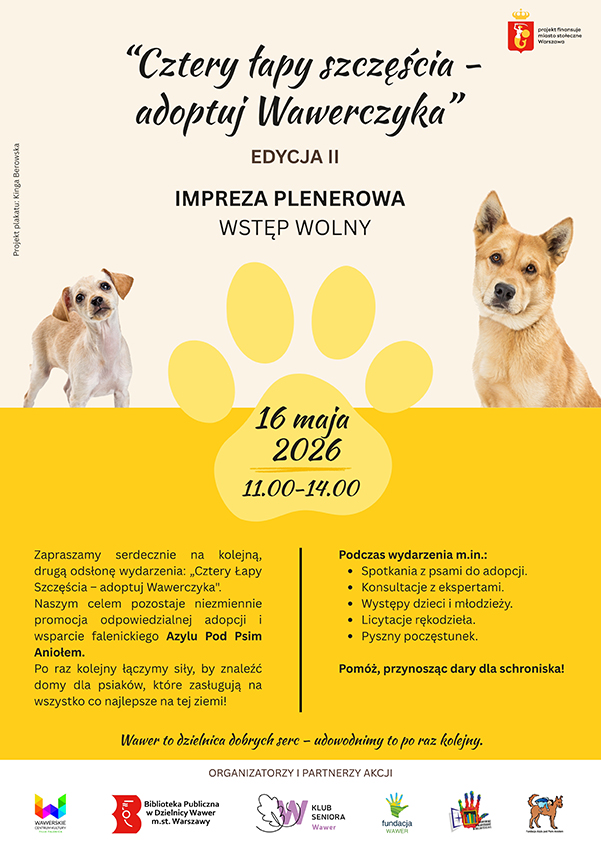 Impreza plenerowa "Cztery łapy szczęścia - adoptuj Wawerczyka" w WCK Falenica